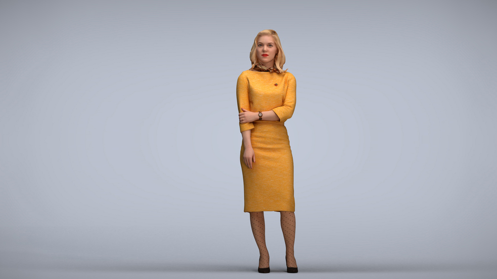 Keywords: 00016_Fay002, architectural visualization, augmented reality, VR, 3D animation, illustrations, Woman, Yellow dress, Standing, Arms crossed, Fashion, Style, Confident, Pose, Elegance, Beauty
