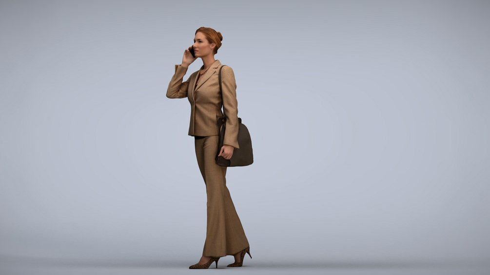 Keywords: 00109_Halle013, architectural visualization, augmented reality, VR, 3D animation, illustrations, woman, suit, professional attire, businesswoman, cellphone, talking, communication, modern technology, multitasking, busy, working, corporate, professional, career, office attire, connected, conversation