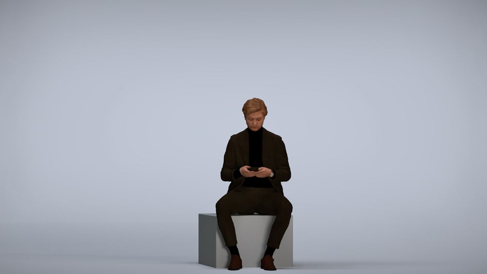 Keywords: 00120_Rian004, architectural visualization, augmented reality, VR, 3D animation, illustrations, man, sitting, cube, cell phone, technology, communication, casual, modern, lifestyle