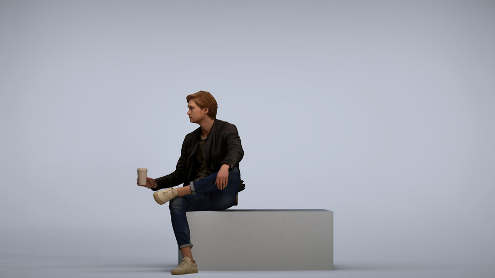Keywords: 00124_Rian008, architectural visualization, augmented reality, VR, 3D animation, illustrations, Man, Sitting, Box, Holding, Cup, Resting