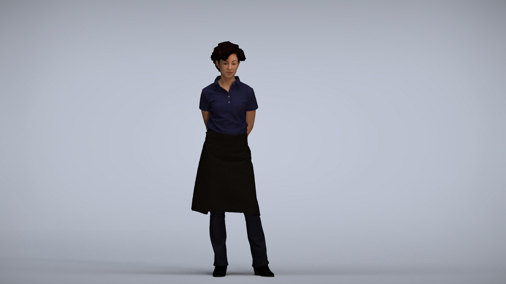 Keywords: 00165_Lynn003, architectural visualization, augmented reality, VR, 3D animation, illustrations, woman, blue shirt, black skirt, fashion, outfit, style, clothing, casual, professional, waiter, hospitality
