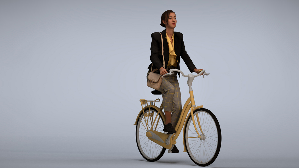 Keywords: 00333_Siti001, architectural visualization, augmented reality, VR, 3D animation, illustrations, woman, ride, bike, cycling, bag, transport, commute, exercise, outdoors, active, lifestyle
